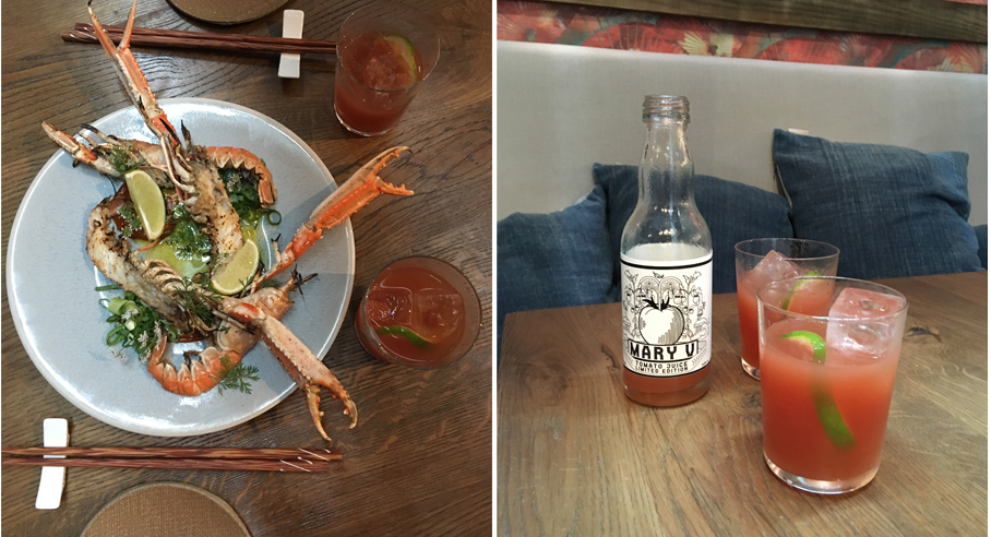 Bij één van de gerechtjes die we deze week in BUN Bar Restaurant aten, stelde chef Huibrecht Berendts ons voor om er een gloednieuw drankje bij te drinken: een Mary V. Het dieprode sapje is een gloednieuwe mocktail van zijn vriend en stadsgenoot Nick Bril. Het is een eigenzinnige interpretatie van Nick Bril van de Bloody Mary. Best een stevig drankje dat zeer goed matchte met de lekkere gegrilde langoustines. Pittig dat wel, maar zonder alcohol en dus gaat je hoofd er niet van tollen, laat staan rollen.