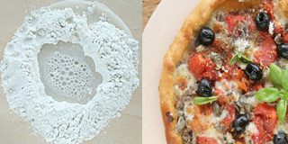 Het plezante aan pizza is dat je met dezelfde basisdeeg telkens een andere pizza uit je oven kan toveren door het beleg te veranderen. Dit is een klassieker met drie hoofdingredienten tomaten, olijven en mozzarella. Hoe je het basisdeeg maakt, kan je lezen op homemade pizza basisdeeg (TVT).