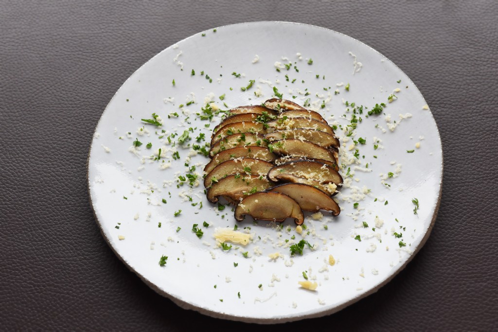 – Shii-take zijn van oorsprong oosterse paddenstoelen met een heel eigen, licht metalige, umamismaak. Ze zijn heel gezond en bevatten veel ijzer waardoor ze belangrijk zijn in elk veggie/veganmenu. Ik noem ze graag ‘champignons waar power in zit’.