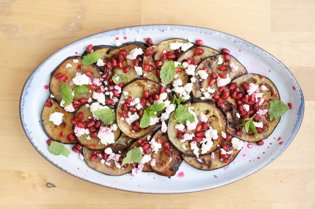 Recept met aubergine: Gebakken aubergine met granaatappel en feta