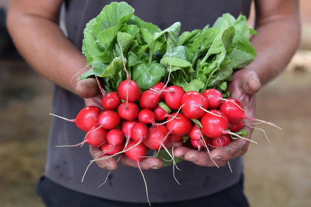 Radijsjes worden steeds in bundeltjes verkocht. Kijk na of het loof fris is en de bolletjes zelf stevig aanvoelen.
