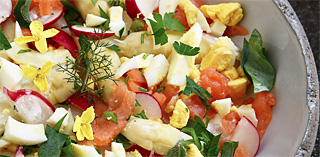 Aspergesalade met gerookte zalm, eitjes en radijsjes – Tine Bral